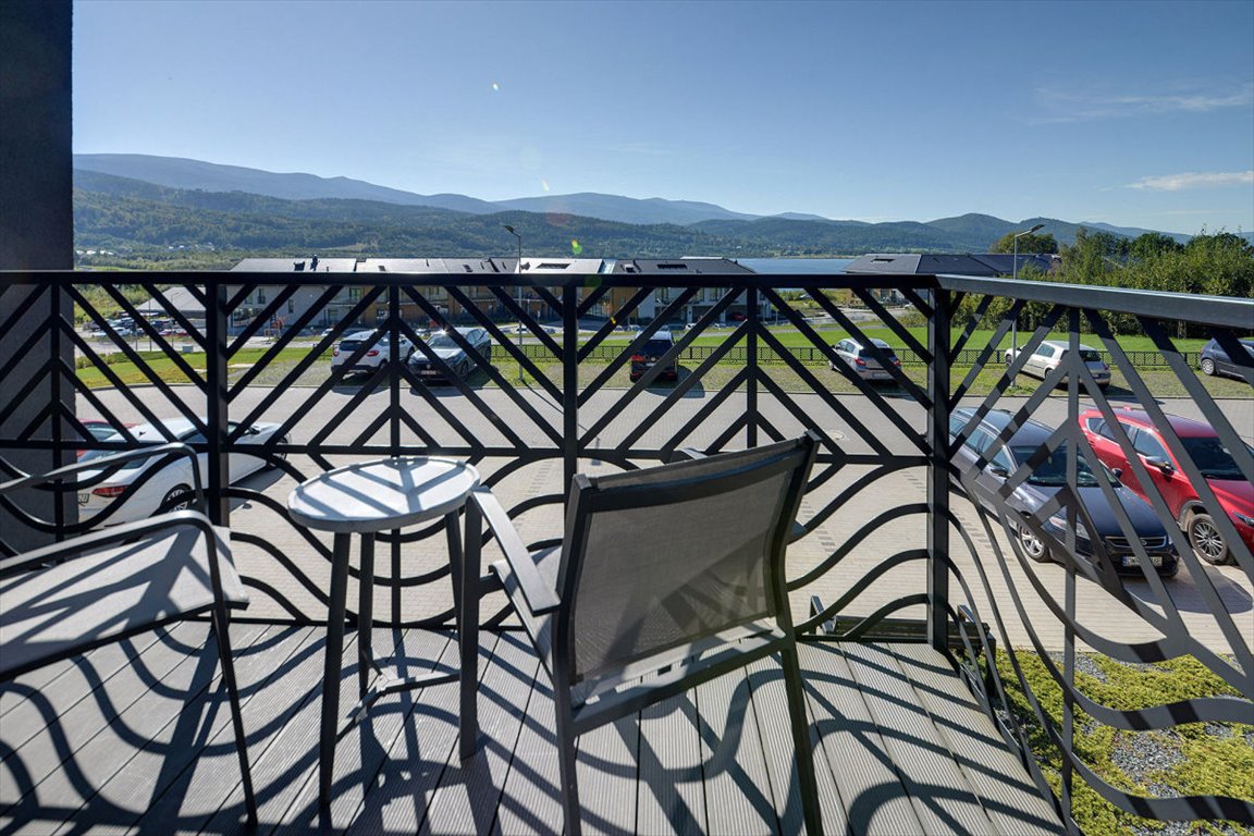 Największym atutem nieruchomości jest spektakularny widok rozciągający się z balkonu na całe pasmo Karkonoszy oraz Zalew Sosnówka - unikalne połączenie gór i wody, które tworzy niepowtarzalny, całoroczny krajobraz i znacząco podnosi atrakcyjność najmu