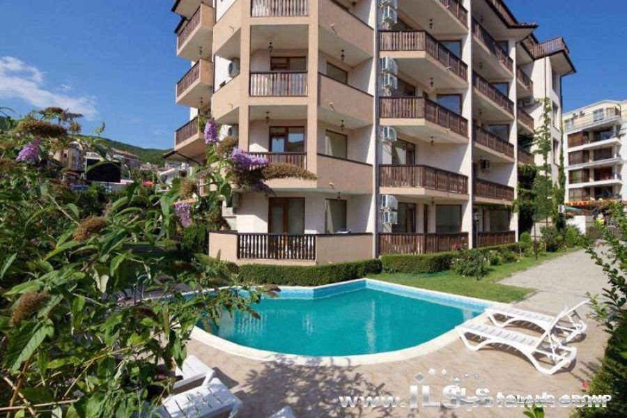 Przestronny apartament dwupokojowy z umeblowaniem i wyposażeniem w okazyjnej cenie, w całorocznym kompleksie Shipka położonym w odległości zaledwie 350 metrów od plaży w centralnej części Sveti Vlas nad Morzem Czarnym w Bułgarii.