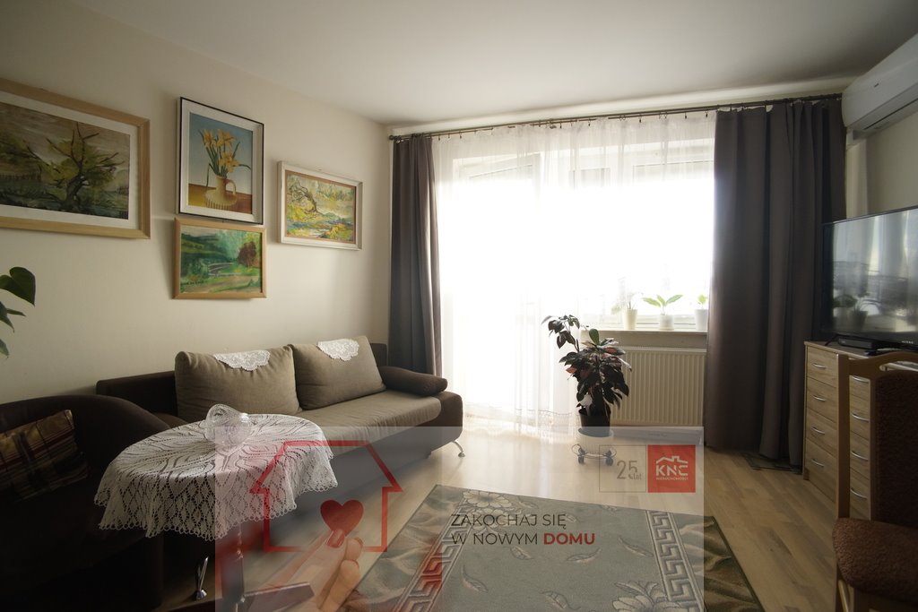 Mieszkanie jest wyjątkowo ładne i funkcjonalne. Całość składa się z dużego salonu połączonego z otwartą kuchnią oraz pokoju. Z obydwu tych pomieszczeń można wejść na przestronny balkon, który nie sąsiaduje bezpośrednio z innymi, przynależnymi do pobocznych lokali. Mieszkanie jest w bardzo dobrym stanie - zadbane, estetyczne i dobrze wyposażone. Praktycznie nie wymaga specjalnych nakładów finansowych. W zabudowanej kuchni są wszelkie niezbędne sprzęty, pokoje są umeblowane. W przedpokoju znajduje się obszerna szafa wnękowa. Do lokalu przynależy piwnica.