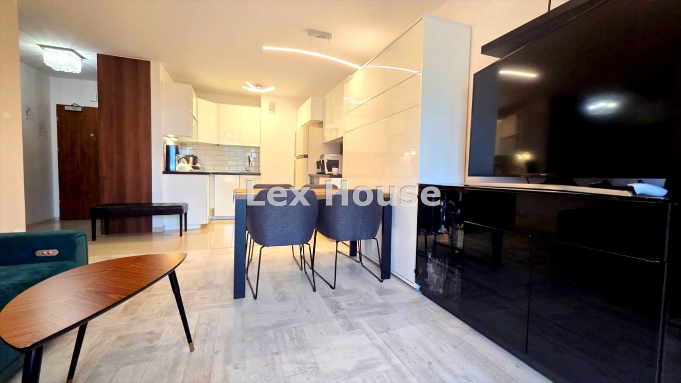 Składa się z przestronnego salonu , w którym oprócz wygodnego narożnika znajduje się pełnowymiarowe łóżko chowane w eleganckiej zabudowie meblowej w połysku - praktyczne rozwiązanie, które pozwala zachować przestrzeń i estetykę wnętrza. Kuchnia jest osobna, w pełni wyposażona i gotowa do użytku, natomiast w łazience znajduje się wanna oraz pralka. W przedpokoju umieszczono dużą szafę w zabudowie, co dodatkowo zwiększa funkcjonalność mieszkania.