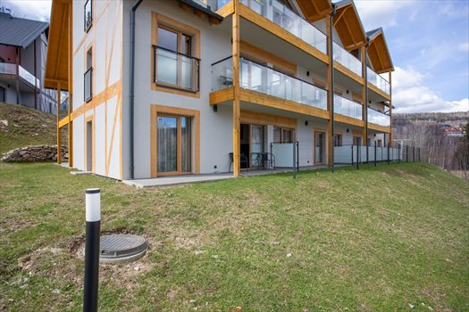 Apartament znajduje się w kameralnej inwestycji , na terenie działki o powierzchni ponad 16 000 m². W jej ramach powstało sześć budynków o architekturze dopasowanej do otoczenia i klimatu Karkonoszy. Całość tworzy spokojne, zielone osiedle , idealne na odpoczynek lub jako baza do wypadów w góry.