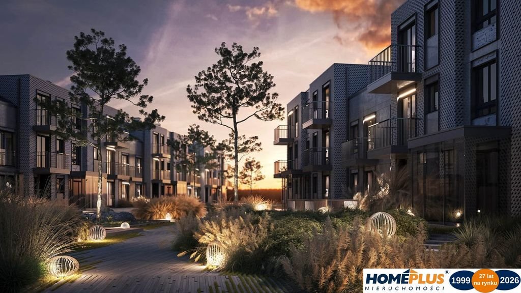 Osiedle charakteryzuje niska zabudowa, która nie dominuje nad przyrodą. Zieleń traw i drzew iglastych jest jeszcze bardziej uwypuklona dzięki szarej elewacji oraz ciemnym ramom okiennym. Solidność projektu widać także po starannie dobranych materiałach np. naturalnym drewnie, uszlachetnionym betonie.