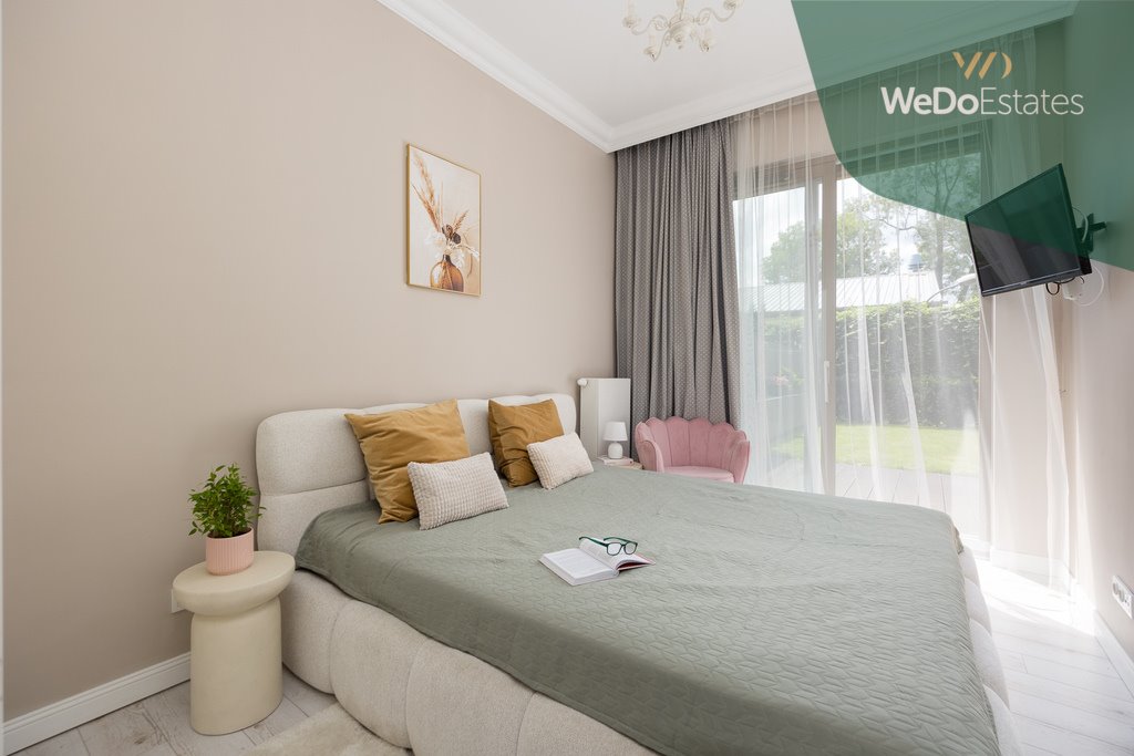 Nieruchomość wyróżnia się dużym, prywatnym ogrodem oraz tarasem o powierzchni 53m2 z bezpośrednim wyjściem z sypialni - idealnym miejscem na relaks, poranną kawę bądź spędzanie czasu z przyjaciółmi.