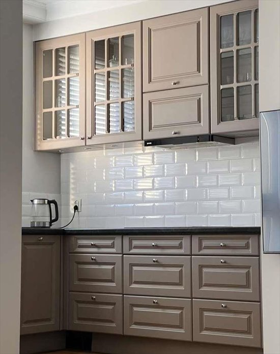 Podłogi drewniane (deska berlinecka, dąb natural, szczotkowana, olejowana, nigdy wcześniej nie cyklinowana), wykładzina w sypialni oraz płytki gresowe imitujące deski w łazience. Meble w zabudowie stolarskiej do wysokości sufitu z zachowaniem przemyślanej organizacji i maksymalnym wykorzystaniem powierzchni przechowywania.