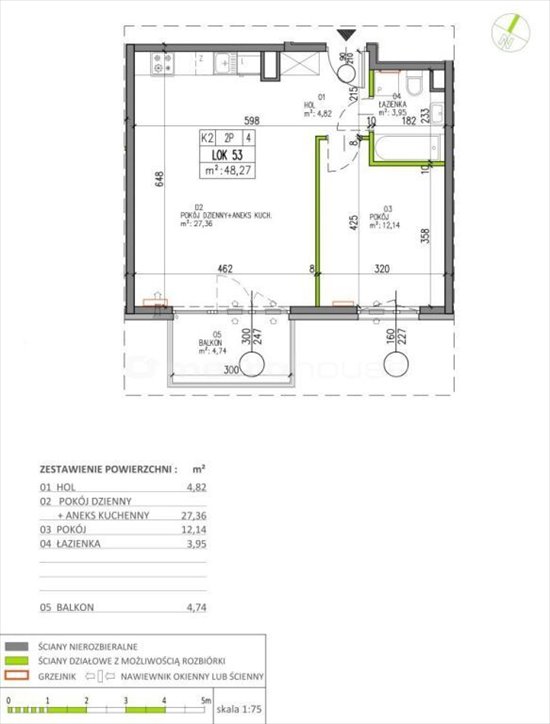 - Powierzchnia całkowita48,27 m2