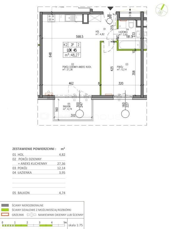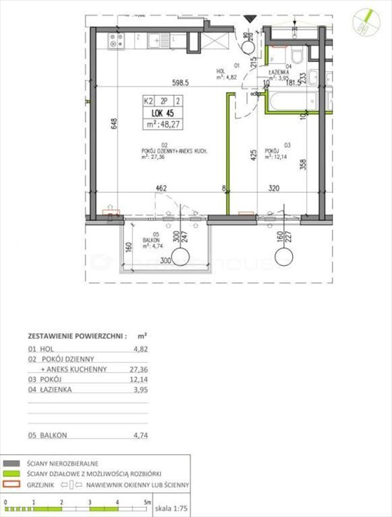 - Powierzchnia całkowita48,27 m2