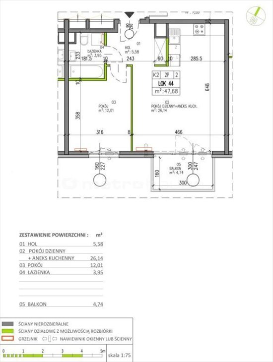 - Powierzchnia całkowita47,68 m2
