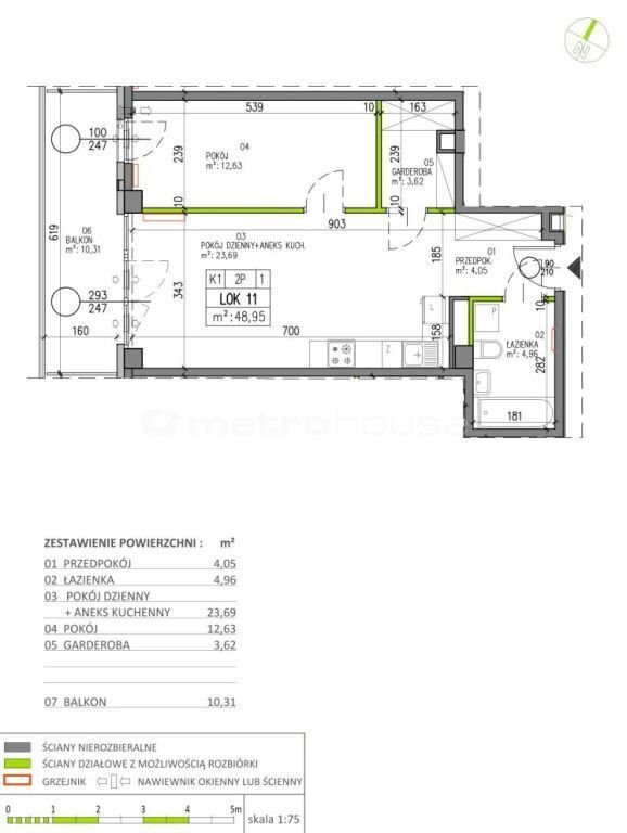 - Powierzchnia całkowita48,95 m2