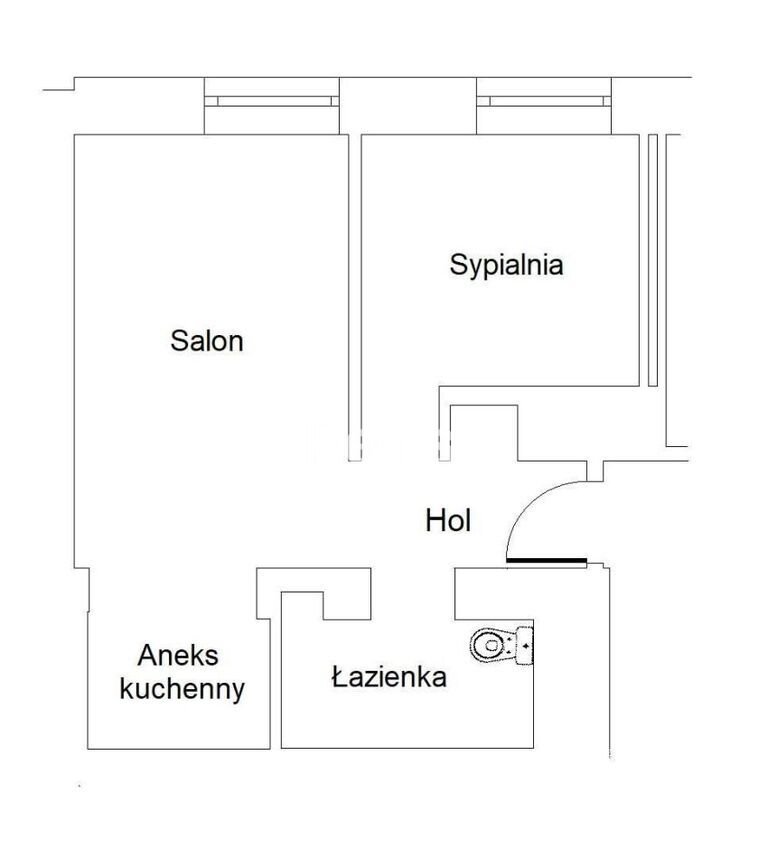 Pokój z aneksem kuchennym ( 14 mkw.), sypialnia (7 mkw.), łazienka (5 mkw), przedpokój (2 mkw).