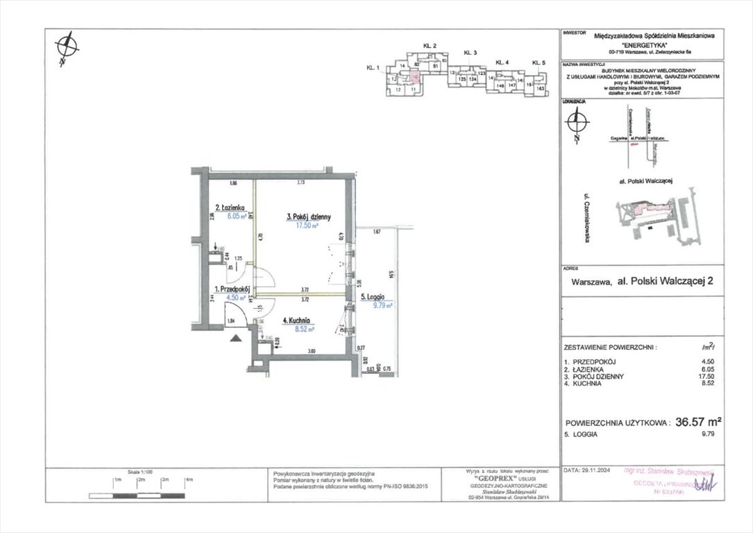 Mieszkanie o powierzchni 36,57 m² położone jest na 4. piętrze budynku z 2025 roku.