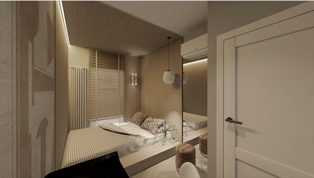 • Oddzielnej sypialni z miejscem na dużą szafę i biurko do pracy