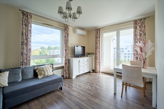 Lokal o powierzchni 51,5m² składa się z 2 pokoi, oddzielnej kuchni, łazienki, przedpokoju i loggi. Przestronny i jasny salon został wyposażony w klimatyzację, która zapewnia komfort w upalne dni. Duże okna doskonale doświetlają pomieszczenia. Mieszkanie zostało urządzone w spójnym stylu emanując klasą i elegancją. Kuchnia została wyposażona we wszystkie niezbędne sprzęty AGD. W sypialni znajdziemy duże łózko, dwie szafy oraz komodę, które zapewniają dużo miejsca do przechowywania. W łazience znajduje się wanna z szybą prysznicową - praktyczne i funkcjonalne rozwiązanie. W przedpokoju mieści się pojemna szafa, zapewniająca dodatkowe miejsce.