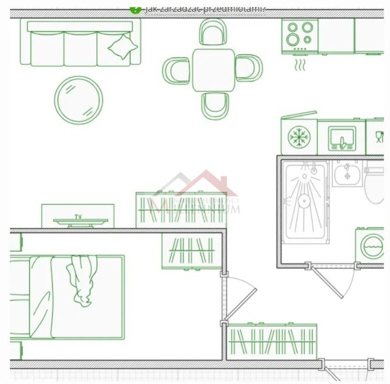 - Salon z aneksem kuchennym (26m2)