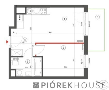 Mieszkanie o powierzchni 37m2. Układ: