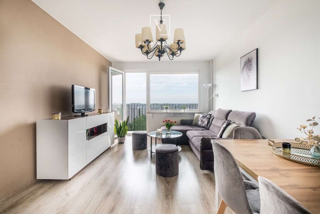 Z ogromną przyjemnością prezentuję Państwu ofertę sprzedaży komfortowego mieszkania o powierzchni 43 m², położonego na 14. piętrze zadbanego bloku, w otoczeniu zieleni, z przepięknym widokiem na panoramę Warszawy, przy metrze Imielin.