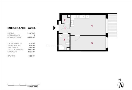 - Powierzchnia całkowita46,26 m2