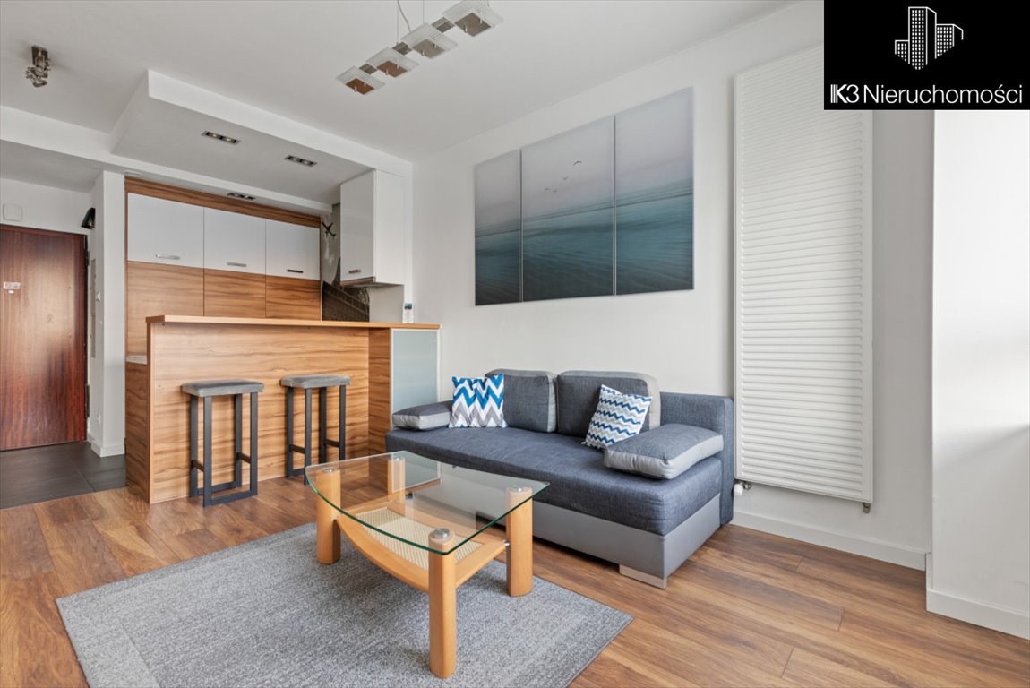 Mieszkanie wykończone w jasnej, neutralnej kolorystyce, co optycznie powiększa przestrzeń i nadaje wnętrzu nowoczesny, świeży charakter. Apartament został podzielony na dwie strefy: wypoczynkową oraz sypialnianą. Kuchnia jest w pełni funkcjonalna, z miejscem na niezbędne sprzęty AGD oraz praktyczną zabudową. Łazienka z dużym prysznicem i nowoczesną armaturą. Dopełnieniem części mieszkalnej jest duży, funkcjonalny balkon z którego rozpościera się widok na stołeczne centrum.