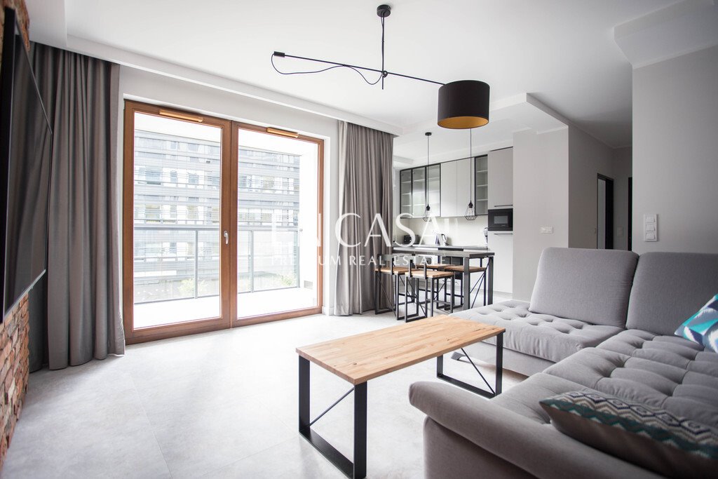 Komfortowy apartament, wykończony wysokiej jakości materiałami. Kuchnia i szafy w lokalu wykonane na zamówienie przez stolarza. Salon i sypialnia wyposażone są w klimatyzację.