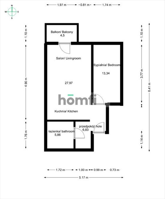 przedpokój – 6,83 m²