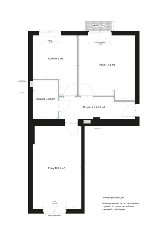 - Układ: 2 pokoje, kuchnia, łazienka, przedpokój, balkon, piwnica