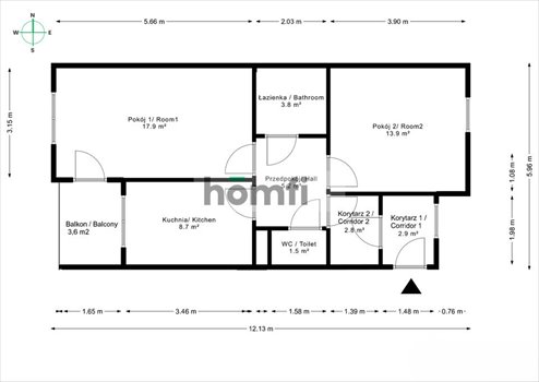 This spacious, two-room apartment with an area of 58 m² is located on the third floor of the building. The apartment is accessed directly from an open hallway (gallery), a feature rarely found in modern buildings, giving the property a unique atmosphere. The apartment has windows facing both the gallery (courtyard side) and the street, ensuring excellent ventilation and lighting.