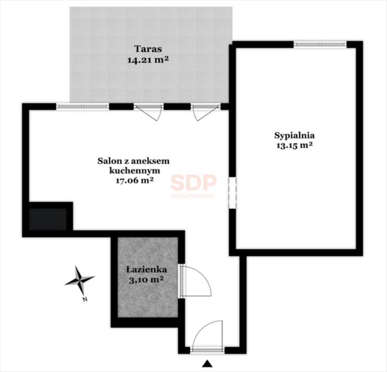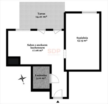 - Salon z aneksem kuchennym - 17,06 m2