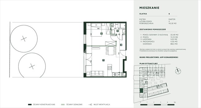 - Cena: 545 832 PLN (12 600 PLN/m²)
