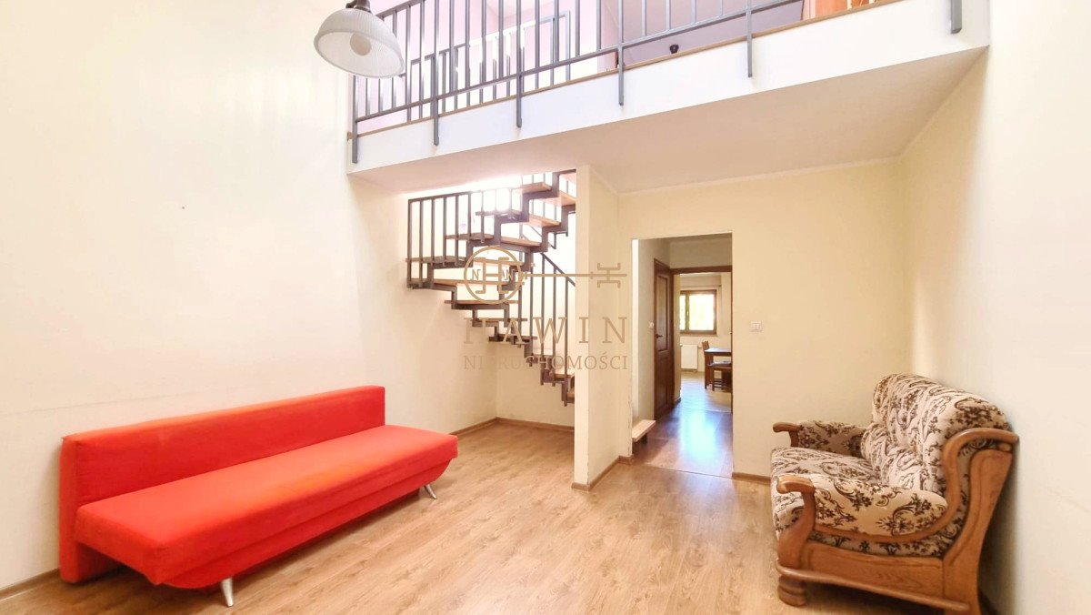 Na parterze mieszkania znajduje się przestronny hall, duży salon z wyjściem na balkon, osobna kuchnia, łazienka z wanną, .