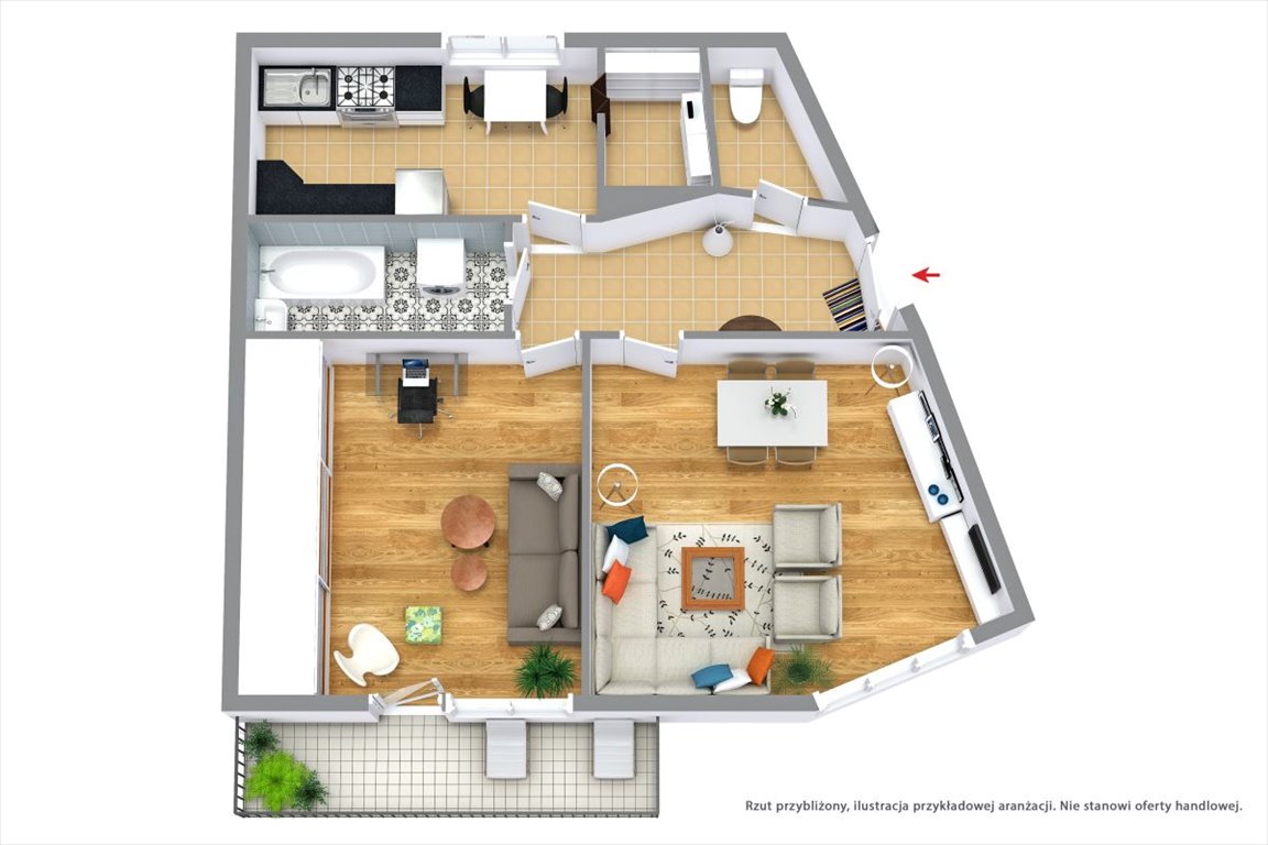 * Na podłogach panele oraz gres