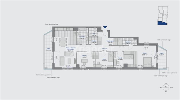 Apartament wyróżnia się bardzo dużą częścią dzienną oraz aż dwiema loggiami, co daje dużo światła i dodatkowej przestrzeni do wypoczynku.