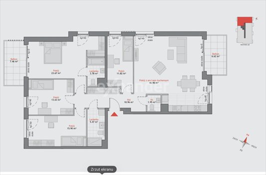 * Strefa dzienna z aneksem kuchennym: 40,80 m²