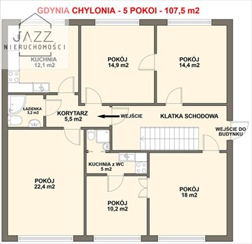 Pięciopokojowe mieszkanie na parterze o pow. 105,7 m2 na ul. Kartuskiej w Gdyni.