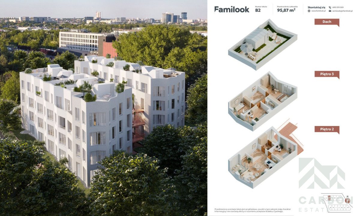 Dwupoziomowe, pięciopokojowe pokojowe komfortowe mieszkanie o metrażu 95,47 m2 położone na 3 i 4 kondygnacji w inwestycji deweloperskiej Familook.