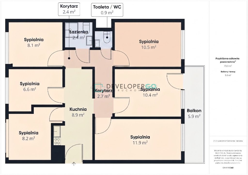 - Metraż: 73 m²