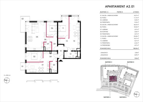 Apartament jest częścią nowoczesnego kompleksu czterech budynków. Części wspólne inwestycji cechują się wysokiej jakości eleganckim wykończeniem.