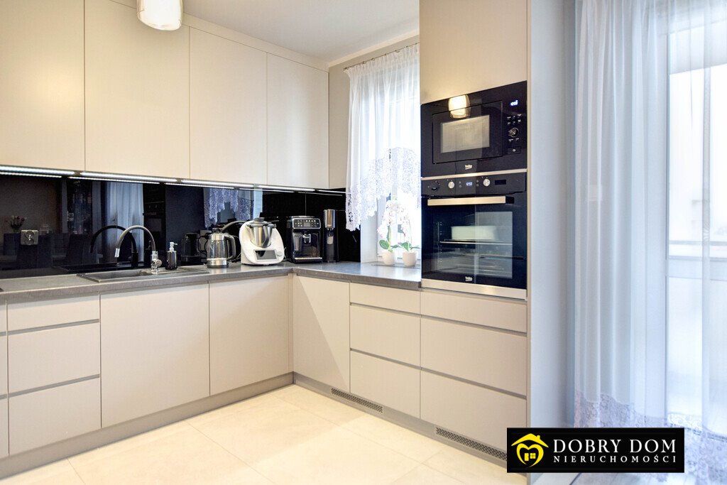 Mieszkanie zostało wykończone dla siebie, przy użyciu materiałów najwyższej jakości. Sercem domu jest salon połączony z funkcjonalnym aneksem kuchennym.