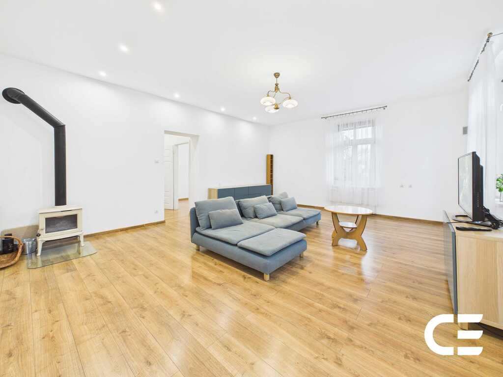 - przestronny salon z ozdobną kozą, która ogrzewa mieszkanie w okresach przejściowych i tworzy wyjątkowy klimat