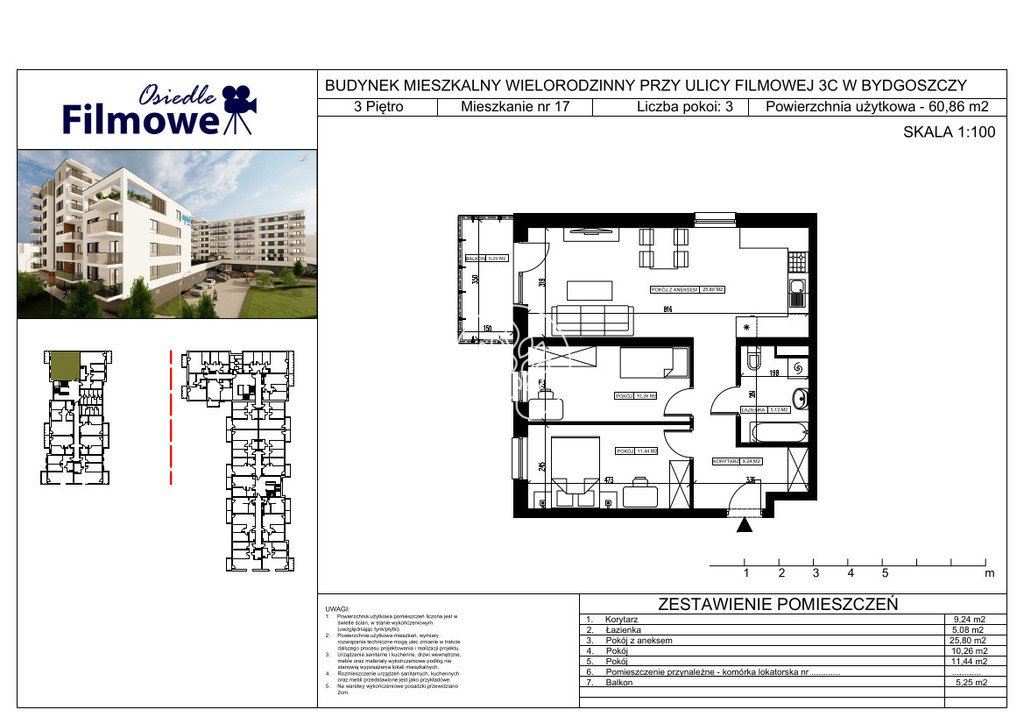 Przestronne 3-pokojowe mieszkanie na sprzedaż w Bydgoszczy Bydgoszcz, Bartodzieje Małe, Filmowa - 61,86m2