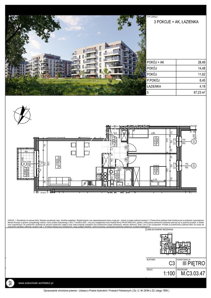 Nowoczesne 3-pokojowe mieszkanie z widokiem na Wisłę Bydgoszcz, Fordon, Fordońska - 67,23m2