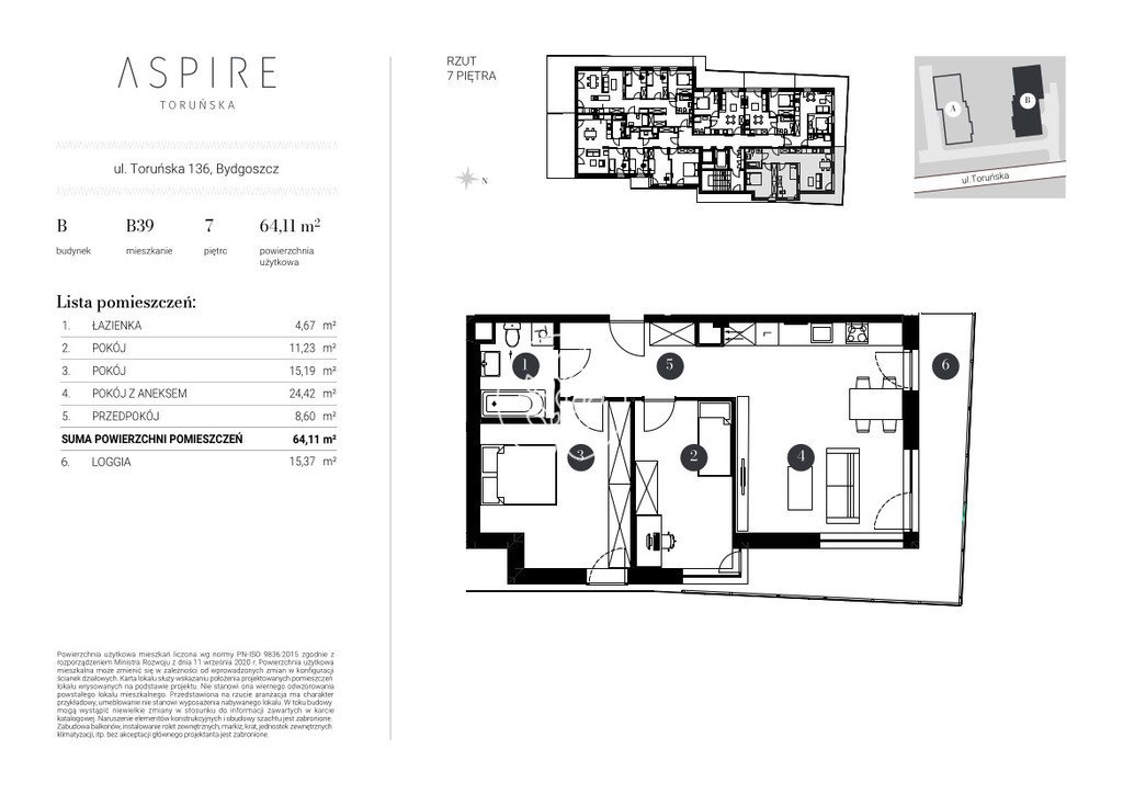 Przestronne 3-pokojowe mieszkanie 65,63 m2 w Bydgoszczy Bydgoszcz, Toruńska - 65,63m2