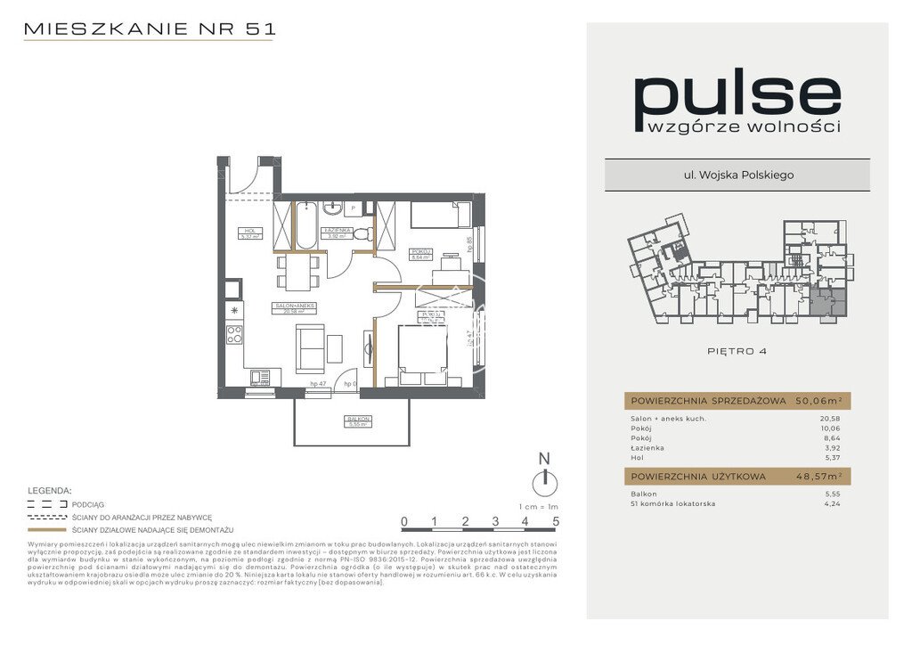 Mieszkanie trzypokojowe na sprzedaż Bydgoszcz, Wzgórze Wolności, Wojska Polskiego - 48,57m2
