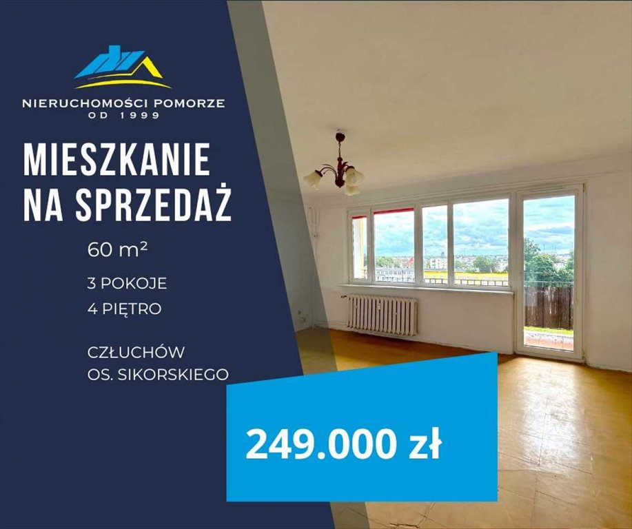 Mieszkanie trzypokojowe na sprzedaż Człuchów, Sikorskiego - 59,8m2