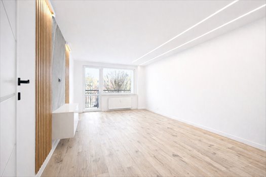 duży salon z wyjściem na balkon,
