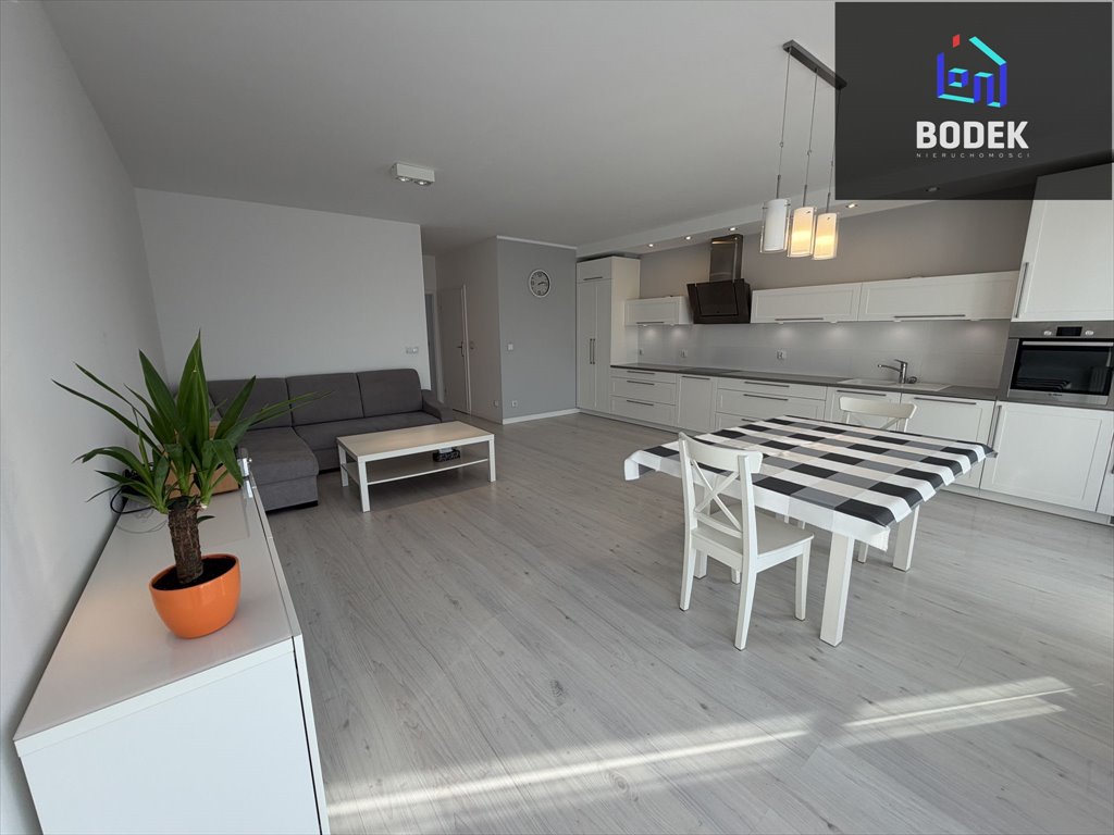 Mieszkanie składa się z przestronnego salonu z aneksem kuchennym około 40 m2, dwóch sypialni oraz korytarza i łazienki. Sypialnie od strony wschodniej, jedna z balkonem. Salon i kuchnia od zachodu również z balkonem. W kuchni kamienny blat oraz wysokiej jakości AGD.