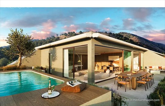 Project of exclusive apartments in a private residential complex, close to Fuengirola, on the Costa del Sol. A prime location, in a beautiful natural environment with landscaped gardens, and only 5 minutes away from the beach. Its elevated location allows for wonderful views of the Mediterranean, as well as being close to a selection of services available in Fuengirola, which is only 10 minutes’ drive from the complex. Other important cities in the area, like Benalmádena and Málaga, are 20 and 25 minutes away respectively.The project comprises luxury apartments with 2 or 3 bedrooms, and are available in different models: ground floor models with a private garden, mid-floor models, and penthouses. All the apartments have spacious terraces and fantastic sea views. The ground floor and penthouse models also include a private pool. All models present an open living area combining the kitchen, dining area and lounge in a large space that opens onto a terrace. The large windows create very bright interiors by allowing natural light in, as well as offering beautiful panoramic views.The apartments are carefully designed, presenting a modern, innovative, and up-market style, by using sustainable materials like steel, natural stone and wood. All apartments include kitchens fully equipped with white goods, Aerothermal air conditioning and heating, underfloor heating in the bathrooms and the master bedroom, or, depending on the model, throughout the apartment, a Smart Home system, a storage room, and two parking spaces with a charging station for electric cars.The complex presents various community areas, inviting residents to enjoy the facilities, like the pools for adults and children, extensive landscaped gardens with Mediterranean plants, orchards, and fruit trees, walking trails, picnic and BBQ areas, a wellness area, a sauna, a co-working room and a games room. The complex offers a concierge service, making it possible to manage various tasks with a mobile app. Residents will also receive a subscription to the exclusive sports club, a Spa, and a beach club.