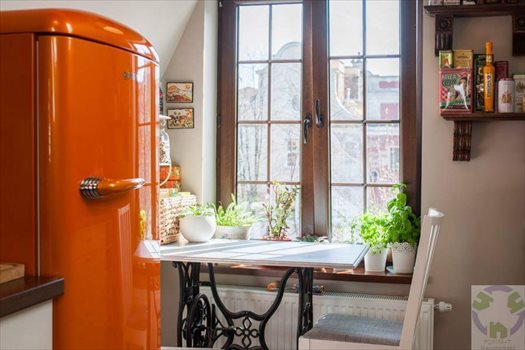 - KUCHNI /pow. 12,0 m2/ JASNEJ, Z DUŻYM OKNEM, z miejscem na kuchenną JADALNIĘ, urządzonej w klimacie, meble w zabudowie kuchennej wykonane na wymiar, wyposażenie w sprzęt AGD wysokiej jakości.