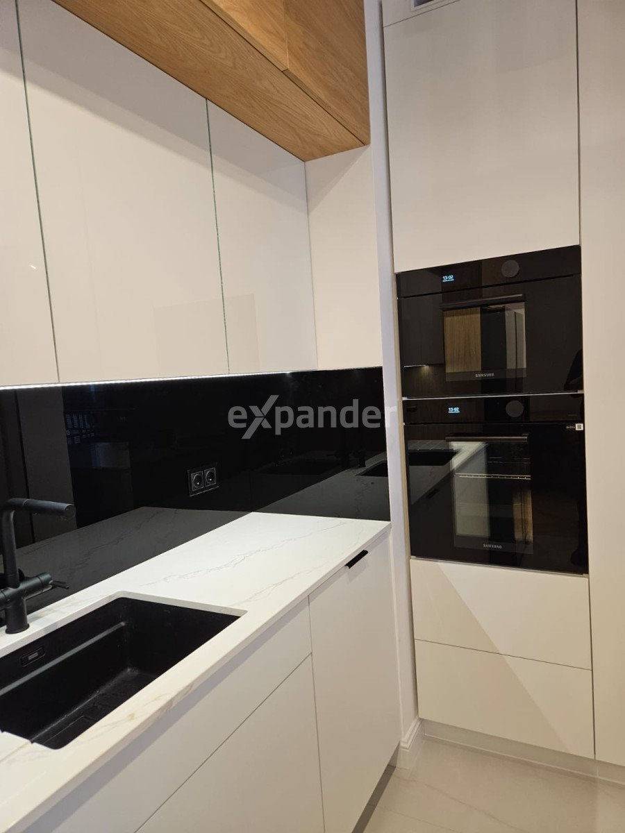 Apartament jest w pełni wykończony i umeblowany na bardzo wysokim poziomie, składa się z salonu z aneksem kuchennym, dwóch sypialni, dwóch łazienek, holu, garderoby oraz pomieszczenia gospodarczego.