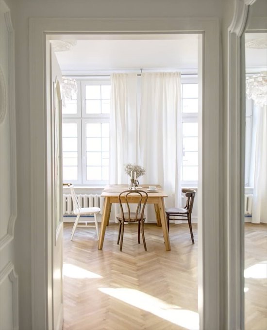 W apartamencie o metrażu 60 m2 mieszczą się trzy komfortowo urządzone pokoje: przestronny salon z aneksem kuchennym i stołem jadalnianym, sypialnia z dużą szafą oraz pokój biurowy z szafą i regałem na książki (łatwy do przerobienia na pokój dla dziecka lub małą sypialnię). Mieszkanie posiada również przestronną łazienkę oraz dodatkowe pomieszczenie - schowek na płaszcze, buty i przybory domowe. Apartament przeszedł generalny remont w 2021r. , podczas którego udało się zachować stare, dobrze działające elementy takie jak drzwi, parkiet, sztukaterie czy kaloryfery.