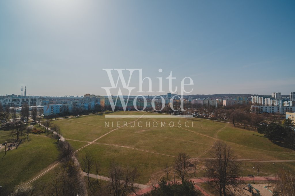 - Salon z wyjściem na balkon i panoramicznym widokiem na Zaspę