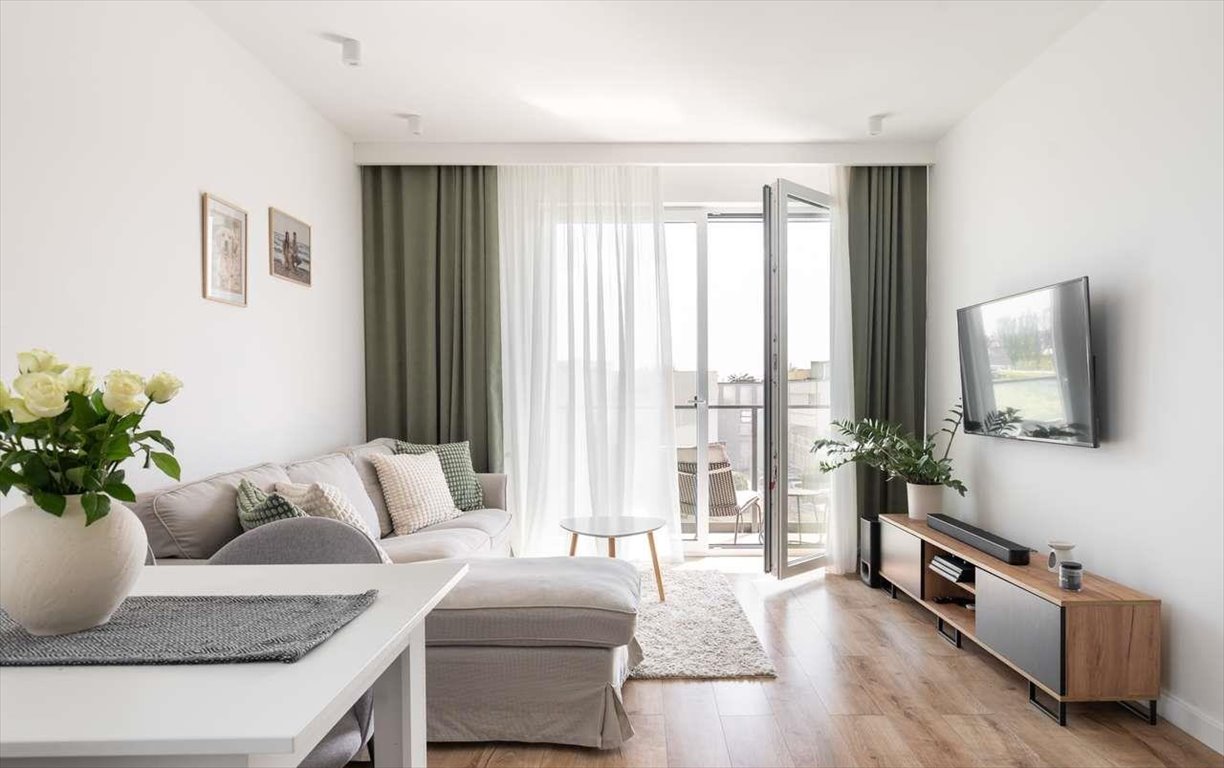 Mieszkanie zostało wykończone z dbałością o estetykę i komfort, w przytulnych, naturalnych tonacjach. Zastosowano wysokiej jakości panele, starannie dobrane drzwi oraz trwałe farby ścienne.